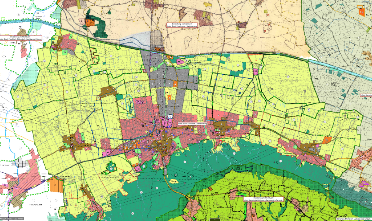 Lübbecke liegt im Grenzgebiet zwischen dem Nordrand der Mittelgebirgsschwelle und dem Flachland der norddeutschen Tiefebene bei 52° 19' nördlicher Breite und 8° 37' östlicher Länge.